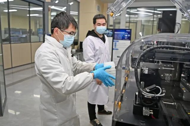 岳麓山种业创新中心实验室,研究人员正在进行高通量仪器操作